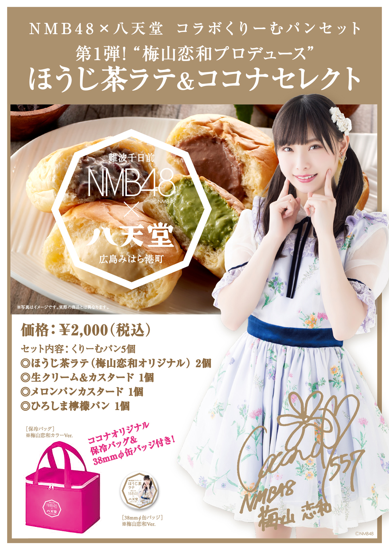 NMB48×八天堂コラボくりーむパンセット第1弾!“梅山恋和プロデュース”ほうじ茶ラテ&ココナセレクトを販売!
