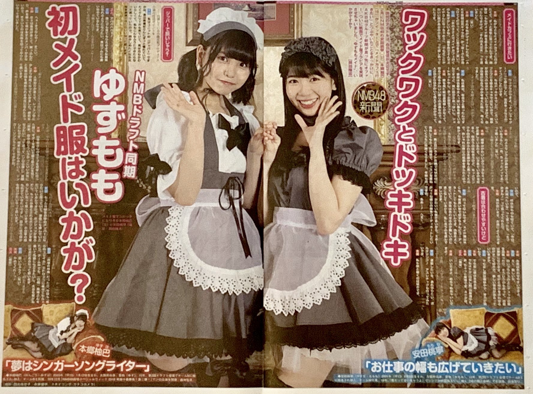 【NMB48】AKB新聞5月号に掲載中の本郷柚巴、安田桃寧のメイド服記事が大好評だった模様