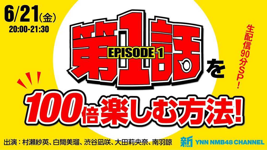 【NMB48】6/21(金)新YNNにて「『#第1話』を100倍楽しむ方法!」生配信90分SP!
