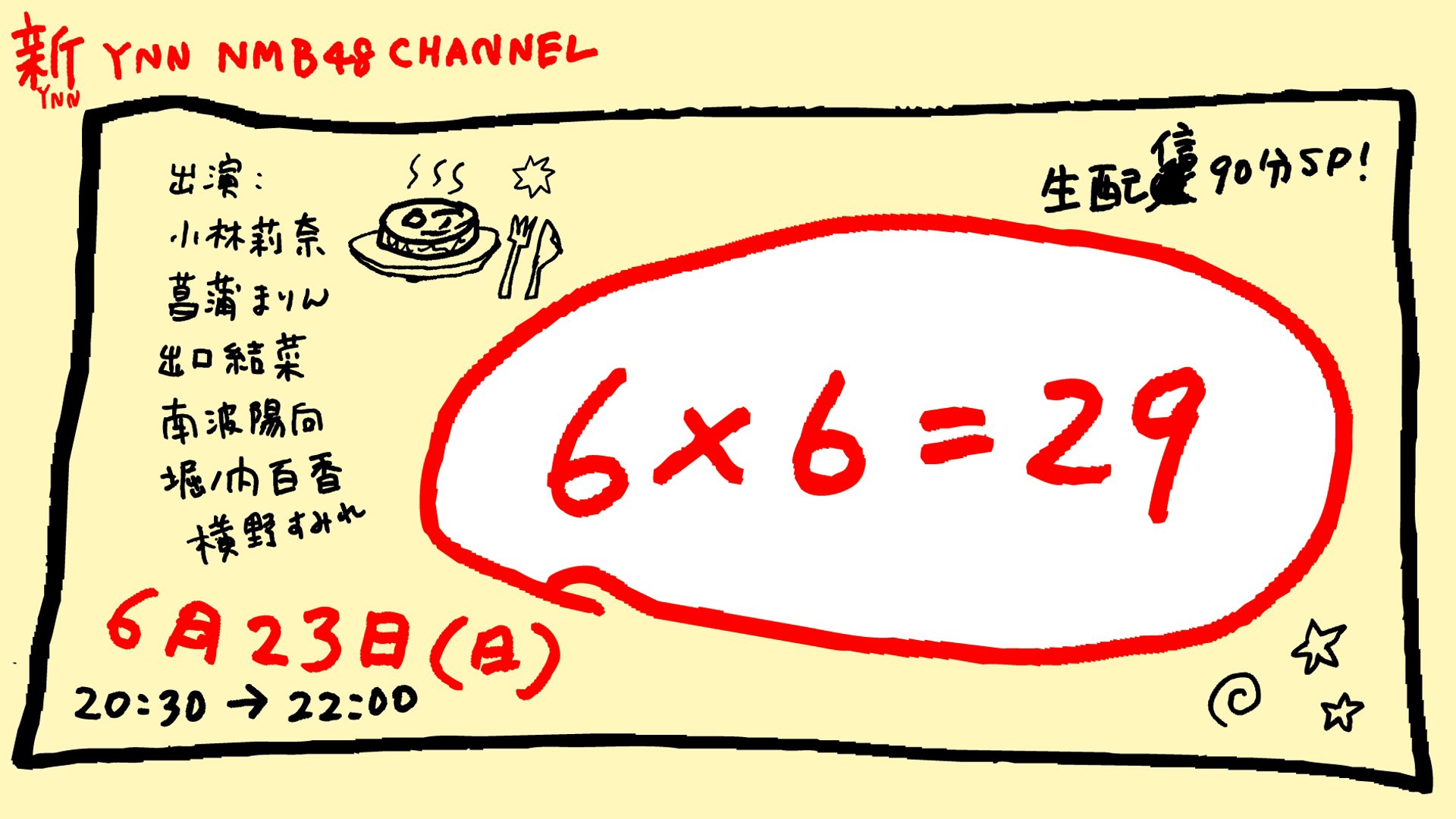 【NMB48】6/23(日)新YNNにて「6×6=29」生配信90分SP!